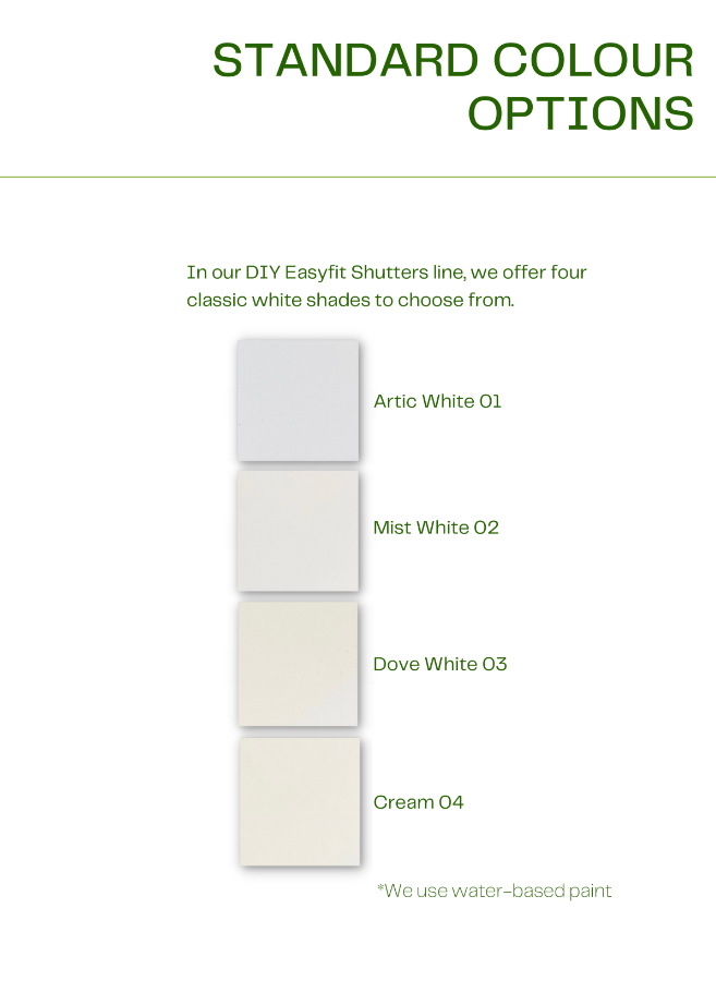 Choosing from DIY EasyFit Shutters’ Four Colour Options